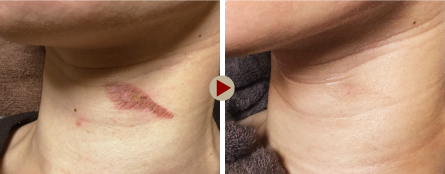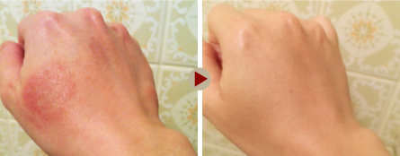 火傷跡。火傷したての傷は、水膨れにもならずに穏やかに鎮静。